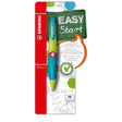 STABILO EASYergo 1.4. Ergonomischer Druckbleistift für fortgeschrittene Schreibanfänger ab 8 Jahren. Mit gefederter Spitze. Trendige Farbkombinationen - vier für Rechtshänder, zwei für Linkshänder. Innovatives, ergonomisches Stift-Design - speziell für Kinderhände. Entspannte Handhabung und leichte Schreibführung, nur geringer Druck notwendig. Längere Griffzone (für ältere Kinder) aus rutschfestem Material. HB-Mine 1,4 mm Durchmesser, Spitzen nicht erforderlich. Minenreste lassen sich einfach entfernen. Unterstützt präzises Schreiben auf feinen Linien und kariertem Papier. Mit Feld zur Namensbeschriftung. Minen-Container mit 6 Minen zusätzlich erhältlich.